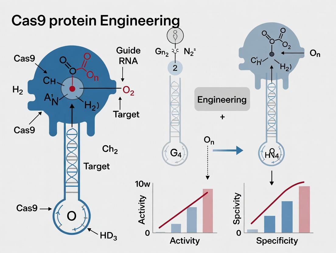 | SpCas9-HF1 | N497A, R661A, Q695A, Q926A | Mutates DNA contact points to require more perfect complementarity. | High-fidelity variant; benchmark for specificity engineering. |